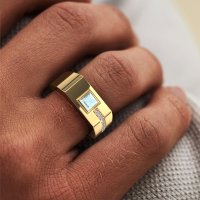 Dress to impress with this rectangular Robertus 1 men's ring, because with the right ring you make a strong personal statement. This Robertus 1 daring men's ring is shown in 14 Carat gold. If this doesn't suit your style, feel free to customize the precious metal to your liking. After all, you want a men's ring that matches your style. A ring that truly suits you. One saying: This is who I am!Customize your own daring Robertus 1 men's ring, which will then be created by our goldsmiths with great passion. Do you prefer a different option than is shown here in the gold Robertus 1 men's ring? Then our online tools offers various options. Feel free to ask us for help if you are unable to succeed. We are happy to answer your questions!New jewelry designs are added to our online collection daily. Our team of passionate designers strive to create extraordinary and diverse designs. Have you seen a ring you like? Please feel free to contact us. Based on a good price/ quality ratio, we will make you an offer you can't refuse!Are you on a budget? Please feel free to contact us, so we can go discuss your options. We offer our rings at guaranteed best price, because we make them to order. You won't find such a price anywhere else!To make it easier for you, we offer a 30 day return policy. Check our terms and conditions.