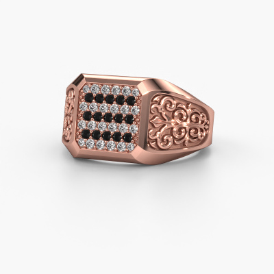 Are you looking for a design rose gold men's ring that is slightly different? Then our flat rose gold black diamond set Amir men's ring is the perfect ring for you! This ring, as shown here, is made of rose gold but feel free to customize to your liking. Show them what you are all about with this rose gold black diamonds Amir men's ring, a ring for ambitious men. Our goldsmiths passionately create your customized men's ring to your liking with the utmost care. The rose gold men's ring, as shown here, can be customized using our online tool. Feel free to ask our jewel designers for assistance if you want changes made which are unavailable in our online tool. We are happy to answer your questions.Our team of talented, passionate designers add new ring designs to our online collection daily. Our objective in doing so, is to be able to offer you a wide variety of jewels. Please feel free to request a quote if you have specific wishes for your ring. We guarantee to make you an offer you can't refuse.Because we design and deliver our own rings, we can offer you a ring at a price you won't find anywhere else. A ring is made to order, which helps prevent excess supplies, so we can make you a great price offer. We understand it feels risky, buying your ring online, but we will gladly assist in the designing process, taking your budget into consideration.To make it easier for you, we offer a 30 day return policy. Check our terms and conditions.