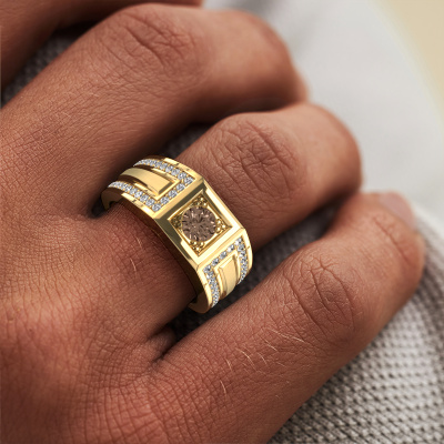Are you looking for a unique gold men's ring that is slightly different? Then our rectangular gold brown diamond set Lando men's ring is the perfect ring for you! This ring, as shown here, is made of gold but feel free to customize to your liking. Show them what you are all about with this gold brown diamonds Lando men's ring, a ring for ambitious men. How do you like this unique gold men's ring? Simply customize this Lando men's ring, using our online tool. Subsequently, your personal royal Lando men's ring will be made by hand by our goldsmiths. Precious metals and gemstones can be customized to your liking. Do you have specific preferences which are unavailable in our online tool? Please feel free to contact us. We will customize your personal unique men's ring to your liking.New jewelry designs are added to our online collection daily. Our team of passionate designers strive to create extraordinary and diverse designs. Have you seen a ring you like? Please feel free to contact us. Based on a good price/ quality ratio, we will make you an offer you can't refuse!Because we design and deliver our own rings, we can offer you a ring at a price you won't find anywhere else. A ring is made to order, which helps prevent excess supplies, so we can make you a great price offer. We understand it feels risky, buying your ring online, but we will gladly assist in the designing process, taking your budget into consideration.To make it easier for you, we offer a 30 day return policy. Check our terms and conditions.