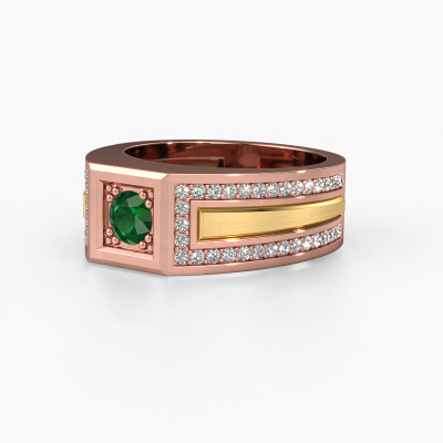 Are you looking for a unique rose gold men's ring that is slightly different? Then our rectangular rose gold emerald set Lando men's ring is the perfect ring for you! This ring, as shown here, is made of rose gold but feel free to customize to your liking. Show them what you are all about with this rose gold emeralds Lando men's ring, a ring for ambitious men. How do you like this unique rose gold men's ring? Simply customize this Lando men's ring, using our online tool. Subsequently, your personal royal Lando men's ring will be made by hand by our goldsmiths. Precious metals and gemstones can be customized to your liking. Do you have specific preferences which are unavailable in our online tool? Please feel free to contact us. We will customize your personal unique men's ring to your liking.New jewelry designs are added to our online collection daily. Our team of passionate designers strive to create extraordinary and diverse designs. Have you seen a ring you like? Please feel free to contact us. Based on a good price/ quality ratio, we will make you an offer you can't refuse!Because we design and deliver our own rings, we can offer you a ring at a price you won't find anywhere else. A ring is made to order, which helps prevent excess supplies, so we can make you a great price offer. We understand it feels risky, buying your ring online, but we will gladly assist in the designing process, taking your budget into consideration.To make it easier for you, we offer a 30 day return policy. Check our terms and conditions.