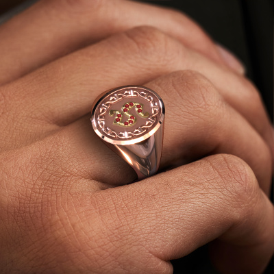 Dress to impress with this oval Ruan men's ring, because with the right ring you make a strong personal statement. This Ruan initial men's ring is shown in 14 Carat rose gold. If this doesn't suit your style, feel free to customize the precious metal to your liking. After all, you want a men's ring that matches your style. A ring that truly suits you. One saying: This is who I am!As soon as you finished designing your Ruan signet ring with our online tool, our goldsmiths will start their creative process of making your ring. This will be done with passion and care, according ancient crafting. On top of that, our jewels are made of eco-friendly materials. Simply customize online with our online tool, if you want any changes made. If you want specific changes made to your Ruan signet ring, that are unavailable in our online tool, please feel free to contact our expert designers.New jewelry designs are added to our online collection daily. Our team of passionate designers strive to create extraordinary and diverse designs. Have you seen a ring you like? Please feel free to contact us. Based on a good price/ quality ratio, we will make you an offer you can't refuse!Because we design and deliver our own rings, we can offer you a ring at a price you won't find anywhere else. A ring is made to order, which helps prevent excess supplies, so we can make you a great price offer. We understand it feels risky, buying your ring online, but we will gladly assist in the designing process, taking your budget into consideration.To make it easier for you, we offer a 30 day return policy. Check our terms and conditions.