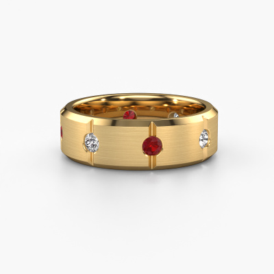Dress to impress with this flat Irwin men's ring, because with the right ring you make a strong personal statement. This Irwin edgy men's ring is shown in 14 Carat gold. If this doesn't suit your style, feel free to customize the precious metal to your liking. After all, you want a men's ring that matches your style. A ring that truly suits you. One saying: This is who I am!How do you like this modern gold men's ring? Simply customize this Irwin men's ring, using our online tool. Subsequently, your personal edgy Irwin men's ring will be made by hand by our goldsmiths. Precious metals and gemstones can be customized to your liking. Do you have specific preferences which are unavailable in our online tool? Please feel free to contact us. We will customize your personal modern men's ring to your liking.