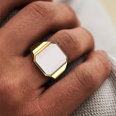The heavy Lars 3 signet ring with octagon red sardonyx stone top, as shown above, is filled with tradition. Customary, the signet ring was passed down from father to son. Start your own tradition with this heavy gold signet ring. We are also more than happy to engrave your ring with a monogram or family crest. Please check our database for further inquiries and options. You can find the departments of our education center at the bottom of this page. Start a new tradition with the classic gold Lars 3 signet ring. How do you like this classic gold signet ring? Simply customize this Lars 3 signet ring, using our online tool. Subsequently, your personal cool Lars 3 signet ring will be made by hand by our goldsmiths. Precious metals and gemstones can be customized to your liking. Do you have specific preferences which are unavailable in our online tool? Please feel free to contact us. We will customize your personal classic signet ring to your liking.