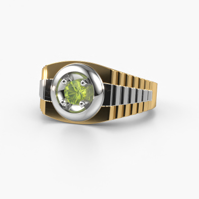 Everyone knows the design of this well-known watch brand. With two colors of gold links, this solid 14 Carat gold Edward men's ring, is perfectly suited for trendy, successful men. A man who wants to dress to impress with a striking men's ring with 4.7 mm peridot. Show them what you are made of!How do you like this exclusive gold men's ring? Simply customize this Edward men's ring, using our online tool. Subsequently, your personal daring Edward men's ring will be made by hand by our goldsmiths. Precious metals and gemstones can be customized to your liking. Do you have specific preferences which are unavailable in our online tool? Please feel free to contact us. We will customize your personal exclusive men's ring to your liking.Our talented designers add new designs to our online collection daily. Together they create a diverse collection of the finest jewelry. If you prefer to make a ring according your own design, please feel free to request a quote. We will make you an amazing offer, based on quality and price.Because we design and deliver our own rings, we can offer you a ring at a price you won't find anywhere else. A ring is made to order, which helps prevent excess supplies, so we can make you a great price offer. We understand it feels risky, buying your ring online, but we will gladly assist in the designing process, taking your budget into consideration.To make it easier for you, we offer a 30 day return policy. Check our terms and conditions.