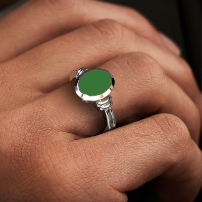 For the contemporary, stylish man that likes a bit of extravagance, we offer the solid platinum Jake 1 pinky ring with green enamel. Traditionally a pinky ring was worn as a sign of wealth. That is why a pink ring is perfectly suited for men who want to stand out. Customize your own best prices Jake 1 signet ring, which will then be created by our goldsmiths with great passion. Do you prefer a different option than is shown here in the platinum Jake 1 signet ring? Then our online tools offers various options. Feel free to ask us for help if you are unable to succeed. We are happy to answer your questions!New jewelry designs are added to our online collection daily. Our team of passionate designers strive to create extraordinary and diverse designs. Have you seen a ring you like? Please feel free to contact us. Based on a good price/ quality ratio, we will make you an offer you can't refuse!After receiving your order, our goldsmiths will start the creative process of making your Jake 1 ring. We don't keep stock. This is advantageous because these costs will not be passed on to you. Therefore, we can offer jewelry at exceptionally low prices.To make it easier for you, we offer a 30 day return policy. Check our terms and conditions.