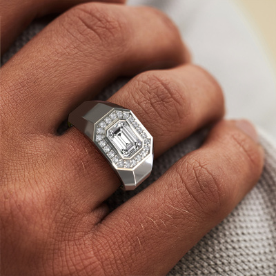 Dress to impress with this rectangular Dylan 2 men's ring, because with the right ring you make a strong personal statement. This Dylan 2 royal men's ring is shown in platinum. If this doesn't suit your style, feel free to customize the precious metal to your liking. After all, you want a men's ring that matches your style. A ring that truly suits you. One saying: This is who I am!The royal Dylan 2 men's ring, as shown here, can be customized to your liking. Our online tool offers many different options but please feel free to contact us if you want changes made to your Dylan 2 men's ring, which are unavailable in our online tool.