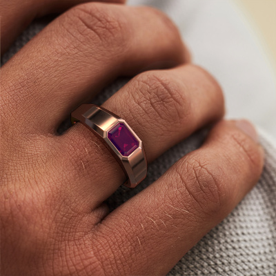 Are you looking for a exclusive rose gold men's ring that is slightly different? Then our rectangular rose gold rhodolite set Dylan 1 men's ring is the perfect ring for you! This ring, as shown here, is made of rose gold but feel free to customize to your liking. Show them what you are all about with this rose gold rhodolite Dylan 1 men's ring, a ring for ambitious men. Our goldsmiths passionately create your customized men's ring to your liking with the utmost care. The rose gold men's ring, as shown here, can be customized using our online tool. Feel free to ask our jewel designers for assistance if you want changes made which are unavailable in our online tool. We are happy to answer your questions.Our team of talented, passionate designers add new ring designs to our online collection daily. Our objective in doing so, is to be able to offer you a wide variety of jewels. Please feel free to request a quote if you have specific wishes for your ring. We guarantee to make you an offer you can't refuse.By using a combination of the latest modern techniques, combined with ancient crafting, we can make all our rings in our own studio. Each jewel is made to order. This is advantageous because we can offer you a price you won't find anywhere else.To make it easier for you, we offer a 30 day return policy. Check our terms and conditions.