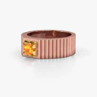 For the contemporary, stylish man that likes a bit of extravagance, we offer the heavy 14 Carat rose gold Elias pinky ring with citrin. Traditionally a pinky ring was worn as a sign of wealth. That is why a pink ring is perfectly suited for men who want to stand out. How do you like this modern rose gold men's ring? Simply customize this Elias men's ring, using our online tool. Subsequently, your personal best prices Elias men's ring will be made by hand by our goldsmiths. Precious metals and gemstones can be customized to your liking. Do you have specific preferences which are unavailable in our online tool? Please feel free to contact us. We will customize your personal modern men's ring to your liking.