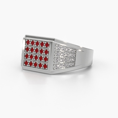 Are you looking for a modern white gold men's ring that is slightly different? Then our rectangular white gold ruby set Tim men's ring is the perfect ring for you! This ring, as shown here, is made of white gold but feel free to customize to your liking. Show them what you are all about with this white gold ruby Tim men's ring, a ring for ambitious men. The special Tim men's ring, as shown here, can be customized to your liking. Our online tool offers many different options but please feel free to contact us if you want changes made to your Tim men's ring, which are unavailable in our online tool.New jewelry designs are added to our online collection daily. Our team of passionate designers strive to create extraordinary and diverse designs. Have you seen a ring you like? Please feel free to contact us. Based on a good price/ quality ratio, we will make you an offer you can't refuse!By using a combination of the latest modern techniques, combined with ancient crafting, we can make all our rings in our own studio. Each jewel is made to order. This is advantageous because we can offer you a price you won't find anywhere else.To make it easier for you, we offer a 30 day return policy. Check our terms and conditions.