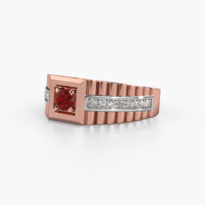 Everyone knows the design of this well-known watch brand. With two colors of rose gold links, this wide 14 Carat rose gold Maikel men's ring, is perfectly suited for trendy, successful men. A man who wants to dress to impress with a striking men's ring with 4.2 mm ruby. Show them what you are made of!Our goldsmiths passionately create your customized men's ring to your liking with the utmost care. The rose gold men's ring, as shown here, can be customized using our online tool. Feel free to ask our jewel designers for assistance if you want changes made which are unavailable in our online tool. We are happy to answer your questions.