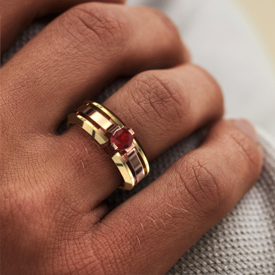 Dress to impress with this 2 Colors Sem men's ring, because with the right ring you make a strong personal statement. This Sem special men's ring is shown in 14 Carat rose gold. If this doesn't suit your style, feel free to customize the precious metal to your liking. After all, you want a men's ring that matches your style. A ring that truly suits you. One saying: This is who I am!Our goldsmiths passionately create your customized men's ring to your liking with the utmost care. The rose gold men's ring, as shown here, can be customized using our online tool. Feel free to ask our jewel designers for assistance if you want changes made which are unavailable in our online tool. We are happy to answer your questions.Our team of talented, passionate designers add new ring designs to our online collection daily. Our objective in doing so, is to be able to offer you a wide variety of jewels. Please feel free to request a quote if you have specific wishes for your ring. We guarantee to make you an offer you can't refuse.By using a combination of the latest modern techniques, combined with ancient crafting, we can make all our rings in our own studio. Each jewel is made to order. This is advantageous because we can offer you a price you won't find anywhere else.To make it easier for you, we offer a 30 day return policy. Check our terms and conditions.