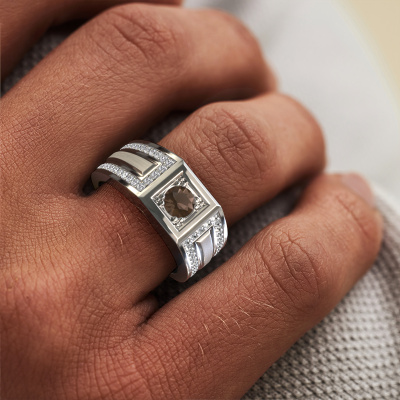 Are you looking for a unique platinum men's ring that is slightly different? Then our rectangular platinum smokey quartz set Lando men's ring is the perfect ring for you! This ring, as shown here, is made of platinum but feel free to customize to your liking. Show them what you are all about with this platinum smokey quartz Lando men's ring, a ring for ambitious men. How do you like this unique platinum men's ring? Simply customize this Lando men's ring, using our online tool. Subsequently, your personal royal Lando men's ring will be made by hand by our goldsmiths. Precious metals and gemstones can be customized to your liking. Do you have specific preferences which are unavailable in our online tool? Please feel free to contact us. We will customize your personal unique men's ring to your liking.New jewelry designs are added to our online collection daily. Our team of passionate designers strive to create extraordinary and diverse designs. Have you seen a ring you like? Please feel free to contact us. Based on a good price/ quality ratio, we will make you an offer you can't refuse!Because we design and deliver our own rings, we can offer you a ring at a price you won't find anywhere else. A ring is made to order, which helps prevent excess supplies, so we can make you a great price offer. We understand it feels risky, buying your ring online, but we will gladly assist in the designing process, taking your budget into consideration.To make it easier for you, we offer a 30 day return policy. Check our terms and conditions.