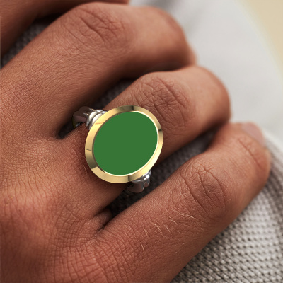 The solid Jake 3 signet ring with oval shape green enamel stone top, as shown above, is filled with tradition. Customary, the signet ring was passed down from father to son. Start your own tradition with this solid white gold signet ring. We are also more than happy to engrave your ring with a monogram or family crest. Please check our database for further inquiries and options. You can find the departments of our education center at the bottom of this page. Start a new tradition with the classic white gold Jake 3 signet ring. The royal Jake 3 signet ring, as shown here, can be customized to your liking. Our online tool offers many different options but please feel free to contact us if you want changes made to your Jake 3 signet ring, which are unavailable in our online tool.Our talented designers add new designs to our online collection daily. Together they create a diverse collection of the finest jewelry. If you prefer to make a ring according your own design, please feel free to request a quote. We will make you an amazing offer, based on quality and price.By using a combination of the latest modern techniques, combined with ancient crafting, we can make all our rings in our own studio. Each jewel is made to order. This is advantageous because we can offer you a price you won't find anywhere else.To make it easier for you, we offer a 30 day return policy. Check our terms and conditions.