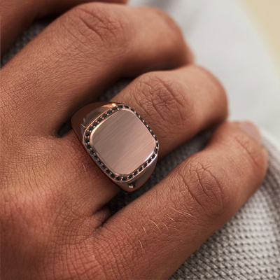 Dress to impress with this square Jesse 1 men's ring, because with the right ring you make a strong personal statement. This Jesse 1 royal men's ring is shown in 14 Carat rose gold. If this doesn't suit your style, feel free to customize the precious metal to your liking. After all, you want a men's ring that matches your style. A ring that truly suits you. One saying: This is who I am!The royal Jesse 1 signet ring, as shown here, can be customized to your liking. Our online tool offers many different options but please feel free to contact us if you want changes made to your Jesse 1 signet ring, which are unavailable in our online tool.New jewelry designs are added to our online collection daily. Our team of passionate designers strive to create extraordinary and diverse designs. Have you seen a ring you like? Please feel free to contact us. Based on a good price/ quality ratio, we will make you an offer you can't refuse!Are you on a budget? Please feel free to contact us, so we can go discuss your options. We offer our rings at guaranteed best price, because we make them to order. You won't find such a price anywhere else!To make it easier for you, we offer a 30 day return policy. Check our terms and conditions.