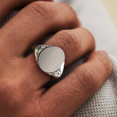 For any ring wearing individual who likes straight shapes, without too much embellishment, we offer the oval white gold Jelle 3 men's ring. This flat surfaced ring stands out with its tight, stylish design and is perfect for the contemporary, confident man. Do you prefer engraving of your special ring with a monogram or family seal? Please check our database for further inquiries and options. You can find the sections of our database at the bottom of this page. The special Jelle 3 signet ring, as shown here, can be customized to your liking. Our online tool offers many different options but please feel free to contact us if you want changes made to your Jelle 3 signet ring, which are unavailable in our online tool.New jewelry designs are added to our online collection daily. Our team of passionate designers strive to create extraordinary and diverse designs. Have you seen a ring you like? Please feel free to contact us. Based on a good price/ quality ratio, we will make you an offer you can't refuse!By using a combination of the latest modern techniques, combined with ancient crafting, we can make all our rings in our own studio. Each jewel is made to order. This is advantageous because we can offer you a price you won't find anywhere else.To make it easier for you, we offer a 30 day return policy. Check our terms and conditions.