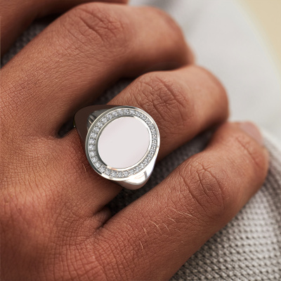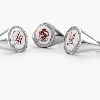 The oval Adam 2 signet ring with oval shape red sardonyx stone top, as shown above, is filled with tradition. Customary, the signet ring was passed down from father to son. Start your own tradition with this oval white gold signet ring. We are also more than happy to engrave your ring with a monogram or family crest. Please check our database for further inquiries and options. You can find the departments of our education center at the bottom of this page. Start a new tradition with the exclusive white gold Adam 2 signet ring. The diamonds Adam 2 signet ring, as shown here, can be customized to your liking. Our online tool offers many different options but please feel free to contact us if you want changes made to your Adam 2 signet ring, which are unavailable in our online tool.Our talented designers add new designs to our online collection daily. Together they create a diverse collection of the finest jewelry. If you prefer to make a ring according your own design, please feel free to request a quote. We will make you an amazing offer, based on quality and price.After receiving your order, our goldsmiths will start the creative process of making your Adam 2 ring. We don't keep stock. This is advantageous because these costs will not be passed on to you. Therefore, we can offer jewelry at exceptionally low prices.To make it easier for you, we offer a 30 day return policy. Check our terms and conditions.