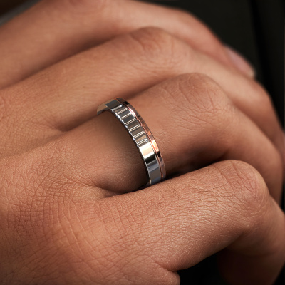 This stunning combination of two precious metals truly symbolizes the special bond between two people! And that is what makes this WH0332M14X ring a special wedding ring, a true symbol of your love! By using a combination of the most modern techniques and ancient crafting, our goldsmith will be able to create your white gold men's wedding ring with great care. Resulting in a uniquely handmade ring, a sign of love! This modern WH0332M14X wedding ring with flat profile has an ±0.16 in (4 mm) width and has a shiny finish. You can choose the combination of precious metals of your preference in our online tool. Anything goes! It is wise to browse through the characteristics of each different precious metal. For example, gold and silver are softer metals. Carat is determined by the amount of added extra metals. If the goldsmith doesn't add a lot, carat is higher and the wedding ring will be softer. If he adds more metals, the jewel has a lower amount of carat. A softer precious metal can still be used for your modern wedding ring! If you prefer a precious metal which will last a lifetime, we recommend platinum. This is the most solid and durable metal our goldsmith uses.This wedding ring can also serve as a source of inspiration. Would you like the ring to have a matte or shiny finish (at no additional cost), or would you prefer it to be wider or narrower? Anything is possible. Because there are countless variations, we can’t show everything on our website. Do you have an idea for beautiful wedding rings, or have you seen a stunning set of wedding rings elsewhere? Feel free to contact us; our designers are ready to assist you.After receiving your order, our goldsmiths will passionately start the creative process of making your wedding rings in our own artisan studio. Because we do not maintain a large stockpile, we can offer our jewelry at a lower price than other jewelers. Our pricing is proof of that! We offer top quality jewels at lowest price, guaranteed.To make it easier for you, we offer a 30 day return policy. Check our terms and conditions.