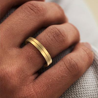To create your men's wedding ring in our artisan studio, we use the most modern techniques, combined with ancient craftsmanship. The end result is this modern WH0200M14AM wedding ring with flat profile, which is crafted to perfection by hand by our goldsmiths. A ring that fills us with pride. This gold WH0200M14AM men's wedding ring has an ±0.16 in (4 mm) width and has a matte finish. After ordering your wedding ring, our goldsmith will start creating your wedding ring immediately. Did you know we use the latest modern techniques, combined with ancient craftsmanship? This helps to create a 3D design of your jewel. You can order a dummy ring, if you please. This way you can check if the wedding ring meets your standard. Then, our goldsmith, who strives for perfection, will create your ring in our own artisan studio completely by hand. We feel passionate creating a unique ring each time. One which is finished to perfection. In the end, you get a wedding ring which matches your wishes.Do you have special preferences regarding your wedding ring? For instance, a smaller or a wider band? Or perhaps a shiny or a matte ring? There are numerous variations possible. You can always discuss the possibilities with our jewelry designers. If you have certain wedding rings in mind, our designers will gladly help by drawing the rings of your dreams. Be sure to contact us!After receiving your order, our goldsmiths will passionately start the creative process of making your wedding rings in our own artisan studio. Because we do not maintain a large stockpile, we can offer our jewelry at a lower price than other jewelers. Our pricing is proof of that! We offer top quality jewels at lowest price, guaranteed.To make it easier for you, we offer a 30 day return policy. Check our terms and conditions.
