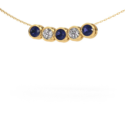 How would you describe your style? Do you like things slightly different? At the very least, this elegant gold necklace Kim 5 is unique, made especially by jewel designers. Our goldsmith will create your pendant to perfection by hand in our own artisan studio. This fashionable necklace is set with a sapphire. These sapphire are selected with great care because we believe your elegant necklace should be adorned with nothing less than the finest gemstones available. Wouldn't you agree?What could possibly be more beautiful than a personally designed fashionable necklace, handmade by yours truly? Please, feel free to customize each model by choosing different precious metals and gemstones. This makes your necklace truly unique. This necklace can be customized to your liking. It goes without saying that you can also ask us for help. We are more than willing to assist in designing your Kim 5 fashionable necklace. If you like but still have specific wishes concerning customizing your design, such as adding a gemstone which isn't mentioned in the list, feel free to contact us. We will gladly inform you on different options.