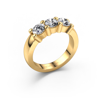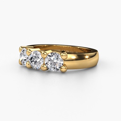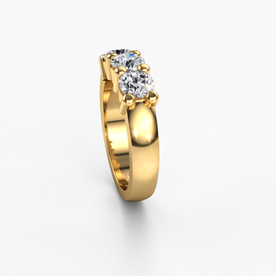 This extraordinary ring is called Yasmin 3. This type of ring is known as a memoire ring, because its gemstones are set in a continuous line. This makes it easy to combine with other rings. The band of this 14 Carat gold ring is set in a combination of diamond and lab-grown diamond 1.50 crt. You can easily choose the combination you prefer online. As you can see, a single diamond is set in this single alliance gold ring. The memoire ring represents collaboration. And that is precisely what these gemstones do, collaborate. Together they add a beautiful effect to the band of a classic ring! Such a meaningful ring, wouldn't you agree? All of our hand selected diamonds are positioned by hand by our expert goldsmith. It's a precise task, which can only be completed successfully through the combination of pure craftsmanship and usage of the latest techniques which give it an optimal effect. To create a perfect reflection of light, all the gemstones have to be perfectly aligned in the same way. During manufacturing, the expert goldsmith will therefore monitor the reflection of light constantly to check whether the diamonds are aligned properly. This requires a skilled hand and a lot of patience but then the end product will be a true piece of art. And that is our mission!By using a combination of the latest modern techniques, combined with ancient crafting, we can make all our rings in our own studio. Each jewel is made to order. This is advantageous because we can offer you a price you won't find anywhere else.Our talented designers add new designs to our online collection daily. Together they create a diverse collection of the finest jewelry. If you prefer to make a ring according your own design, please feel free to request a quote. We will make you an amazing offer, based on quality and price.To make it easier for you, we offer a 30 day return policy. Check our terms and conditions.