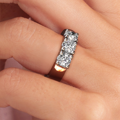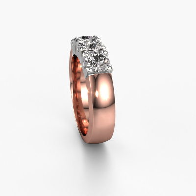 This extraordinary ring is called Rianne 3. This type of ring is known as a memoire ring, because its gemstones are set in a continuous line. This makes it easy to combine with other rings. The band of this 14 Carat rose gold ring is set in a combination of diamond and diamond 1.50 crt. You can easily choose the combination you prefer online. As you can see, a single diamond is set in this single alliance rose gold ring. The memoire ring represents collaboration. And that is precisely what these gemstones do, collaborate. Together they add a beautiful effect to the band of a classic ring! Such a meaningful ring, wouldn't you agree? All of our hand selected diamonds are positioned by hand by our expert goldsmith. It's a precise task, which can only be completed successfully through the combination of pure craftsmanship and usage of the latest techniques which give it an optimal effect. To create a perfect reflection of light, all the gemstones have to be perfectly aligned in the same way. During manufacturing, the expert goldsmith will therefore monitor the reflection of light constantly to check whether the diamonds are aligned properly. This requires a skilled hand and a lot of patience but then the end product will be a true piece of art. And that is our mission!After receiving your order, our goldsmiths will passionately start the creative process of making your ring in our own studio. Because we don't have a big stockpile, these costs will not be passed on to you. Our pricing is proof of that! We offer top quality jewels at lowest price, guaranteed.Our team of talented, passionate designers add new ring designs to our online collection daily. Our objective in doing so, is to be able to offer you a wide variety of jewels. Please feel free to request a quote if you have specific wishes for your ring. We guarantee to make you an offer you can't refuse.To make it easier for you, we offer a 30 day return policy. Check our terms and conditions.