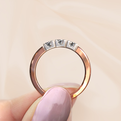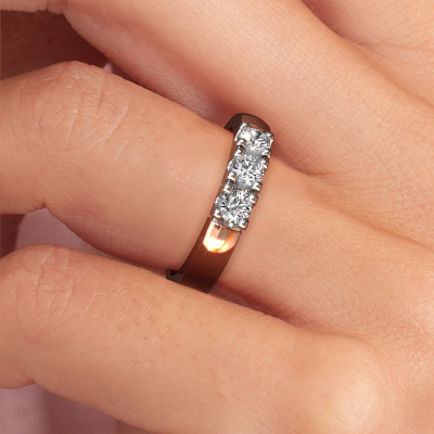 This extraordinary ring is called Rianne 3. This type of ring is known as a memoire ring, because its gemstones are set in a continuous line. This makes it easy to combine with other rings. The band of this 14 Carat rose gold ring is set in a combination of zirconia and diamond 3.4 mm. You can easily choose the combination you prefer online. As you can see, a single zirconia is set in this single alliance rose gold ring. The memoire ring represents collaboration. And that is precisely what these gemstones do, collaborate. Together they add a beautiful effect to the band of a classic ring! Such a meaningful ring, wouldn't you agree? All of our hand selected cz-stones are positioned by hand by our expert goldsmith. It's a precise task, which can only be completed successfully through the combination of pure craftsmanship and usage of the latest techniques which give it an optimal effect. To create a perfect reflection of light, all the gemstones have to be perfectly aligned in the same way. During manufacturing, the expert goldsmith will therefore monitor the reflection of light constantly to check whether the cz-stones are aligned properly. This requires a skilled hand and a lot of patience but then the end product will be a true piece of art. And that is our mission!After receiving your order, our goldsmiths will passionately start the creative process of making your ring in our own studio. Because we don't have a big stockpile, these costs will not be passed on to you. Our pricing is proof of that! We offer top quality jewels at lowest price, guaranteed.Our team of talented, passionate designers add new ring designs to our online collection daily. Our objective in doing so, is to be able to offer you a wide variety of jewels. Please feel free to request a quote if you have specific wishes for your ring. We guarantee to make you an offer you can't refuse.To make it easier for you, we offer a 30 day return policy. Check our terms and conditions.
