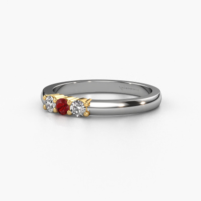 This extraordinary ring is called Yasmin 3. This type of ring is known as a memoire ring, because its gemstones are set in a continuous line. This makes it easy to combine with other rings. The band of this 14 Carat white gold ring is set in a combination of ruby and lab-grown diamond 3 mm. You can easily choose the combination you prefer online. As you can see, a single ruby is set in this single alliance white gold ring. The memoire ring represents collaboration. And that is precisely what these gemstones do, collaborate. Together they add a beautiful effect to the band of a classic ring! Such a meaningful ring, wouldn't you agree? All of our hand selected ruby are positioned by hand by our expert goldsmith. It's a precise task, which can only be completed successfully through the combination of pure craftsmanship and usage of the latest techniques which give it an optimal effect. To create a perfect reflection of light, all the gemstones have to be perfectly aligned in the same way. During manufacturing, the expert goldsmith will therefore monitor the reflection of light constantly to check whether the ruby are aligned properly. This requires a skilled hand and a lot of patience but then the end product will be a true piece of art. And that is our mission!By using a combination of the latest modern techniques, combined with ancient crafting, we can make all our rings in our own studio. Each jewel is made to order. This is advantageous because we can offer you a price you won't find anywhere else.Our talented designers add new designs to our online collection daily. Together they create a diverse collection of the finest jewelry. If you prefer to make a ring according your own design, please feel free to request a quote. We will make you an amazing offer, based on quality and price.To make it easier for you, we offer a 30 day return policy. Check our terms and conditions.