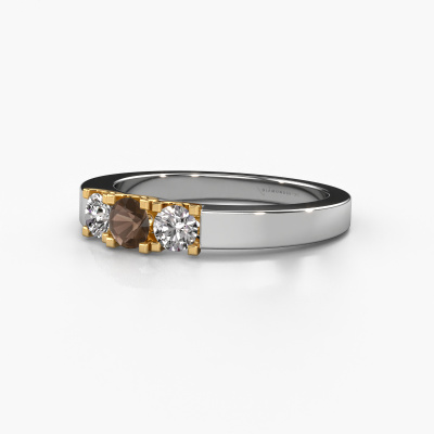 This extraordinary ring is called Selina 1. This type of ring is known as a memoire ring, because its gemstones are set in a continuous line. This makes it easy to combine with other rings. The band of this 14 Carat white gold ring is set in a combination of smokey quartz and diamond 3.7 mm. You can easily choose the combination you prefer online. As you can see, a single smokey quartz is set in this single alliance white gold ring. The memoire ring represents collaboration. And that is precisely what these gemstones do, collaborate. Together they add a beautiful effect to the band of a modern ring! Such a meaningful ring, wouldn't you agree? All of our hand selected smokey quartz are positioned by hand by our expert goldsmith. It's a precise task, which can only be completed successfully through the combination of pure craftsmanship and usage of the latest techniques which give it an optimal effect. To create a perfect reflection of light, all the gemstones have to be perfectly aligned in the same way. During manufacturing, the expert goldsmith will therefore monitor the reflection of light constantly to check whether the smokey quartz are aligned properly. This requires a skilled hand and a lot of patience but then the end product will be a true piece of art. And that is our mission!By using our modern techniques, we can design and customize the finest quality jewels with the utmost care for you. Our rings are always priced 30 percent lower than other jewelers. We make rings to order, so we don't have to maintain a large stock. If you have a certain budget, we are more than happy to advice you accordingly.New jewelry designs are added to our online collection daily. Our team of passionate designers strive to create extraordinary and diverse designs. Have you seen a ring you like? Please feel free to contact us. Based on a good price/ quality ratio, we will make you an offer you can't refuse!To make it easier for you, we offer a 30 day return policy. Check our terms and conditions.
