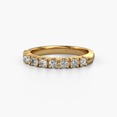 This extraordinary ring is called Rianne 9. This type of ring is known as a memoire ring, because its gemstones are set in a continuous line. This makes it easy to combine with other rings. The band of this 14 Carat gold ring is set in a combination of diamond and diamond 0.495 crt. You can easily choose the combination you prefer online. As you can see, a single diamond is set in this single alliance gold ring. The memoire ring represents collaboration. And that is precisely what these gemstones do, collaborate. Together they add a beautiful effect to the band of a classic ring! Such a meaningful ring, wouldn't you agree? All of our hand selected diamonds are positioned by hand by our expert goldsmith. It's a precise task, which can only be completed successfully through the combination of pure craftsmanship and usage of the latest techniques which give it an optimal effect. To create a perfect reflection of light, all the gemstones have to be perfectly aligned in the same way. During manufacturing, the expert goldsmith will therefore monitor the reflection of light constantly to check whether the diamonds are aligned properly. This requires a skilled hand and a lot of patience but then the end product will be a true piece of art. And that is our mission!Are you on a budget? Please feel free to contact us, so we can go discuss your options. We offer our rings at guaranteed best price, because we make them to order. You won't find such a price anywhere else!