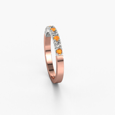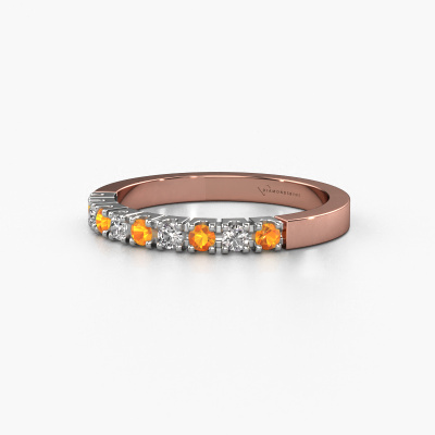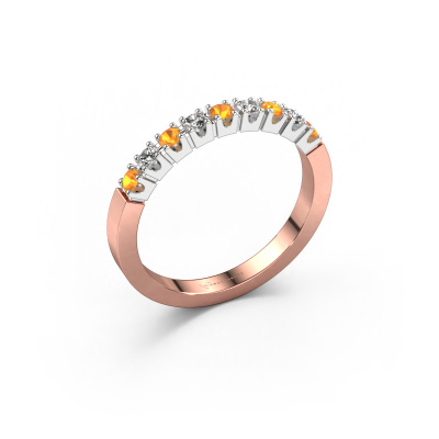 This extraordinary ring is called Dana 9. This type of ring is known as a memoire ring, because its gemstones are set in a continuous line. This makes it easy to combine with other rings. The band of this 14 Carat rose gold ring is set in a combination of citrin and diamond 2 mm. You can easily choose the combination you prefer online. As you can see, a single citrin is set in this single alliance rose gold ring. The memoire ring represents collaboration. And that is precisely what these gemstones do, collaborate. Together they add a beautiful effect to the band of a modern ring! Such a meaningful ring, wouldn't you agree? All of our hand selected citrin are positioned by hand by our expert goldsmith. It's a precise task, which can only be completed successfully through the combination of pure craftsmanship and usage of the latest techniques which give it an optimal effect. To create a perfect reflection of light, all the gemstones have to be perfectly aligned in the same way. During manufacturing, the expert goldsmith will therefore monitor the reflection of light constantly to check whether the citrin are aligned properly. This requires a skilled hand and a lot of patience but then the end product will be a true piece of art. And that is our mission!After receiving your order, our goldsmiths will passionately start the creative process of making your ring in our own studio. Because we don't have a big stockpile, these costs will not be passed on to you. Our pricing is proof of that! We offer top quality jewels at lowest price, guaranteed.Our talented designers add new designs to our online collection daily. Together they create a diverse collection of the finest jewelry. If you prefer to make a ring according your own design, please feel free to request a quote. We will make you an amazing offer, based on quality and price.To make it easier for you, we offer a 30 day return policy. Check our terms and conditions.