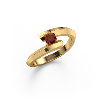 This ring called Paulette is made of 14 Carat gold and is set with garnet. Are you in the market for a unique gold ring with a modern twist? Then this ring might suit you. Simply customize to your or her liking. It suits the contemporary modern woman. This affordable ring is set with beautiful garnet. This has been carefully selected. Because your ring must be adorned with nothing but the most stunning gemstone. Our expert goldsmith will create your ring in our own studio, where the garnet will be set with great care. The ring will then be polished to perfection to create a stunning ring. After receiving your order, our goldsmiths will passionately start the creative process of making your ring in our own studio. Because we don't have a big stockpile, these costs will not be passed on to you. Our pricing is proof of that! We offer top quality jewels at lowest price, guaranteed.Our team of talented, passionate designers add new ring designs to our online collection daily. Our objective in doing so, is to be able to offer you a wide variety of jewels. Please feel free to request a quote if you have specific wishes for your ring. We guarantee to make you an offer you can't refuse.To make it easier for you, we offer a 30 day return policy. Check our terms and conditions.