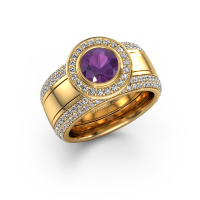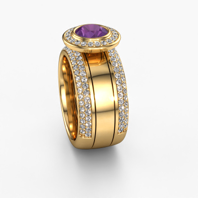Because of its detailed finish, this wide ring with amethyst has a stylish appearance. A pavé set ring that fits the contemporary woman like a glove. This gold ring, our Roxie, is a true eye-catcher indeed! As soon as we know what you desire, we