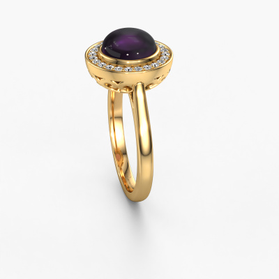 Are you looking for a royal ring with an eye-catching single gemstone? How do you like this Alisa ring? This gold Alisa ring is set with a beautiful 8 mm round cabochon amethyst. The amethyst is carefully selected by our amethysten suppliers. Subsequently, these birthstones are then set by our goldsmith according to ancient tradition. The ring will then be polished to perfection creating a unique ring with a stunning amethyst. Created especially for you. A customized fantasy ring is the perfect gift! New exquisite designs are added daily by our team of passionate goldsmiths. And each design can be customized. Simply customize the precious metals and the color of gemstones which will be used, for example. This makes your design of the fantasy Alisa ring truly unique!Are you on a budget? Please feel free to contact us, so we can go discuss your options. We offer our rings at guaranteed best price, because we make them to order. You won't find such a price anywhere else!To make it easier for you, we offer a 30 day return policy. Check our terms and conditions.