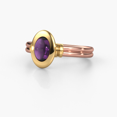 In this photo the rose gold Brittni ring is set with a cabochon amethyst. Cabochon means a amethyst is shaped first, not faceted, into a specific shape, such as a drop, heart or oval cabochon. Subsequently, it is polished until the gemstone has a orb shaped surface. A cabochon gemstone is a stunning, classy eye-catcher that matches perfectly with a contemporary as well as a vintage style. Our expert goldsmiths shape the tasteful ring to perfection which makes it unique. The cabochon amethyst is set so its unique qualities are strengthened. Our goldsmiths passionately create your customized ring to your liking with the utmost care. The rose gold ring, as shown here, can be customized using our online tool. Feel free to ask our jewel designers for assistance if you want changes made which are unavailable in our online tool. We are happy to answer your questions.Because we design and deliver our own rings, we can offer you a ring at a price you won't find anywhere else. A ring is made to order, which helps prevent excess supplies, so we can make you a great price offer. We understand it feels risky, buying your ring online, but we will gladly assist in the designing process, taking your budget into consideration.To make it easier for you, we offer a 30 day return policy. Check our terms and conditions.
