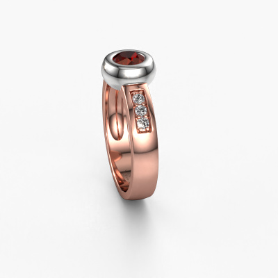 This ring called Charlotte Round is made of 14 Carat rose gold and is set with garnet. Are you in the market for a unique rose gold ring with a modern twist? Then this ring might suit you. Simply customize to your or her liking. It suits the contemporary modern woman. This birthstones ring is set with beautiful garnet. This has been carefully selected. Because your ring must be adorned with nothing but the most stunning gemstone. Our expert goldsmith will create your ring in our own studio, where the garnet will be set with great care. The ring will then be polished to perfection to create a stunning ring. After receiving your order, our goldsmiths will passionately start the creative process of making your ring in our own studio. Because we don't have a big stockpile, these costs will not be passed on to you. Our pricing is proof of that! We offer top quality jewels at lowest price, guaranteed.Our team of talented, passionate designers add new ring designs to our online collection daily. Our objective in doing so, is to be able to offer you a wide variety of jewels. Please feel free to request a quote if you have specific wishes for your ring. We guarantee to make you an offer you can't refuse.To make it easier for you, we offer a 30 day return policy. Check our terms and conditions.