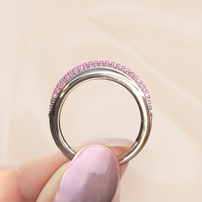 How would you describe your own style? Are you looking for something uniquely different? This charming platinum Paris ring is astonishing! Simply customize to your or her own liking. This ring is set with pink sapphire. These pink sapphire have been carefully selected because your ring must be adorned with nothing but the most beautiful gemstone. Wouldn't you agree? Our expert goldsmith will create your ring in our own crafting studios, where the pink sapphire will be set with care. The ring will then be polished to perfection to give it that extra sparkle. It's a perfect ring for a woman of excellent taste!The best part of this charming ring is that you can customize it to your own liking. Your style, your choice, your ring. On top of that, your modern platinum ring will be made by hand with eco-friendly materials! Please feel free to easily customize the ring, using our online tool.After receiving your order, our goldsmiths will passionately start the creative process of making your ring in our own studio. Because we don't have a big stockpile, these costs will not be passed on to you. Our pricing is proof of that! We offer top quality jewels at lowest price, guaranteed.To make it easier for you, we offer a 30 day return policy. Check our terms and conditions.