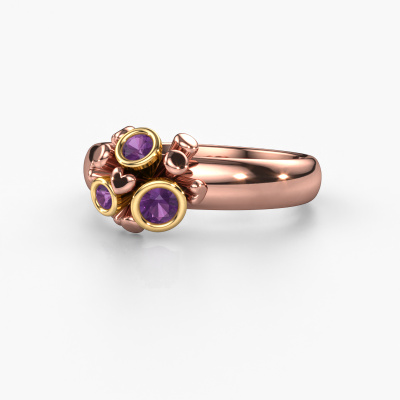 How would you describe your own style? Are you looking for something uniquely different? This flower rose gold Pameila ring is astonishing! Simply customize to your or her own liking. This ring is set with amethyst. These amethysten have been carefully selected because your ring must be adorned with nothing but the most beautiful gemstone. Wouldn't you agree? Our expert goldsmith will create your ring in our own crafting studios, where the amethyst will be set with care. The ring will then be polished to perfection to give it that extra sparkle. It's a perfect ring for a woman of excellent taste!How do you like this contemporary rose gold ring? Simply customize this Pameila ring, using our online tool. Subsequently, your personal flower Pameila ring will be made by hand by our goldsmiths. Precious metals and gemstones can be customized to your liking. Do you have specific preferences which are unavailable in our online tool? Please feel free to contact us. We will customize your personal contemporary ring to your liking.Are you on a budget? Please feel free to contact us, so we can go discuss your options. We offer our rings at guaranteed best price, because we make them to order. You won't find such a price anywhere else!To make it easier for you, we offer a 30 day return policy. Check our terms and conditions.