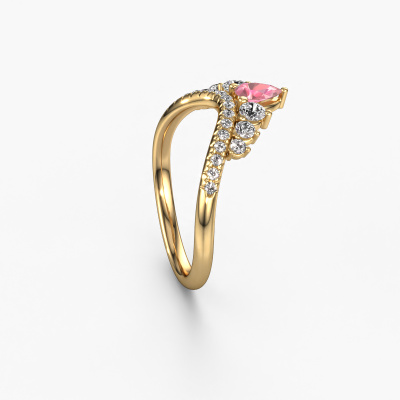 This Crown B stackable ring in 14 Carat gold is set with tourmaline pink. This gold stacked Crown B ring is the perfect addition to your ring collection! As the name suggests, it is a ring which can be combined on one finger with another ring. It gives you the opportunity to create your own style. A stacked ring usually represents a certain memory of someone special or a memorable moment. It is common to combine a stacked ring, representing an anniversary, with a wedding ring. But this daring ring, combined with your other rings, also makes a classy fashion item. As soon as you finished designing your Crown B stackable ring with our online tool, our goldsmiths will start their creative process of making your ring. This will be done with passion and care, according ancient crafting. On top of that, our jewels are made of eco-friendly materials. Simply customize online with our online tool, if you want any changes made. If you want specific changes made to your Crown B stackable ring, that are unavailable in our online tool, please feel free to contact our expert designers.By using our modern techniques, we can design and customize the finest quality jewels with the utmost care for you. Our rings are always priced 30 percent lower than other jewelers. We make rings to order, so we don't have to maintain a large stock. If you have a certain budget, we are more than happy to advice you accordingly.To make it easier for you, we offer a 30 day return policy. Check our terms and conditions.
