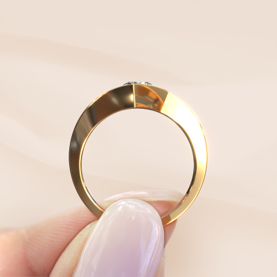 This ring called Elize is made of 14 Carat gold and is set with diamond. Are you in the market for a unique gold ring with a modern twist? Then this ring might suit you. Simply customize to your or her liking. It suits the contemporary modern woman. This edgy ring is set with beautiful diamond. This has been carefully selected. Because your ring must be adorned with nothing but the most stunning gemstone. Our expert goldsmith will create your ring in our own studio, where the diamond will be set with great care. The ring will then be polished to perfection to create a stunning ring. Are you on a budget? Please feel free to contact us, so we can go discuss your options. We offer our rings at guaranteed best price, because we make them to order. You won't find such a price anywhere else!New jewelry designs are added to our online collection daily. Our team of passionate designers strive to create extraordinary and diverse designs. Have you seen a ring you like? Please feel free to contact us. Based on a good price/ quality ratio, we will make you an offer you can't refuse!To make it easier for you, we offer a 30 day return policy. Check our terms and conditions.