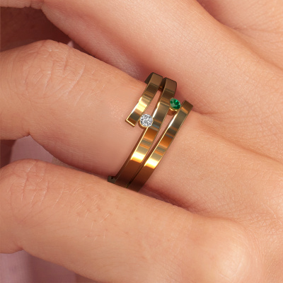 This ring called Roxane is made of 14 Carat gold and is set with emerald. Are you in the market for a unique gold ring with a modern twist? Then this ring might suit you. Simply customize to your or her liking. It suits the contemporary modern woman. This elegant ring is set with beautiful emerald. This has been carefully selected. Because your ring must be adorned with nothing but the most stunning gemstone. Our expert goldsmith will create your ring in our own studio, where the emerald will be set with great care. The ring will then be polished to perfection to create a stunning ring. After receiving your order, our goldsmiths will passionately start the creative process of making your ring in our own studio. Because we don't have a big stockpile, these costs will not be passed on to you. Our pricing is proof of that! We offer top quality jewels at lowest price, guaranteed.Our talented designers add new designs to our online collection daily. Together they create a diverse collection of the finest jewelry. If you prefer to make a ring according your own design, please feel free to request a quote. We will make you an amazing offer, based on quality and price.To make it easier for you, we offer a 30 day return policy. Check our terms and conditions.