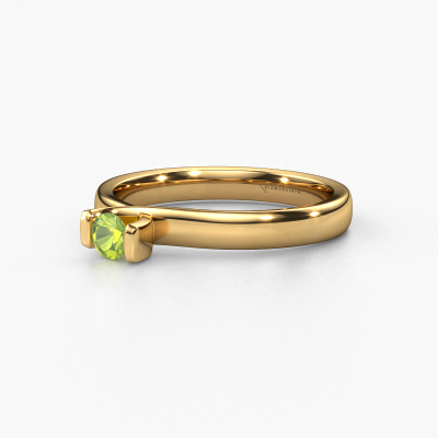 This ring called Noor is made of 14 Carat gold and is set with peridot. Are you in the market for a unique gold ring with a modern twist? Then this ring might suit you. Simply customize to your or her liking. It suits the contemporary modern woman. This elegant ring is set with beautiful peridot. This has been carefully selected. Because your ring must be adorned with nothing but the most stunning gemstone. Our expert goldsmith will create your ring in our own studio, where the peridot will be set with great care. The ring will then be polished to perfection to create a stunning ring. Are you on a budget? Please feel free to contact us, so we can go discuss your options. We offer our rings at guaranteed best price, because we make them to order. You won't find such a price anywhere else!Our team of talented, passionate designers add new ring designs to our online collection daily. Our objective in doing so, is to be able to offer you a wide variety of jewels. Please feel free to request a quote if you have specific wishes for your ring. We guarantee to make you an offer you can't refuse.To make it easier for you, we offer a 30 day return policy. Check our terms and conditions.