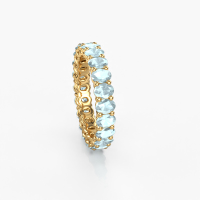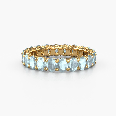 This is our Heddy OVL 3x4 ring. This specific type is called an eternity ring and it is set with a continuous line of identically cut gemstones. The ring is made in 14 Carat gold and is set with small aquamarine, 4x3 mm. This gold Eternity ring is a perfectly beautiful and meaningful way to give your proposal that special touch. The magnificent evenly shaped aquamarine are pave set around the ring. The identical aquamarine are carefully selected to give the ring a maximum effect. Do keep in mind we use natural resources so small differences between stones are common. The special effect is enhanced due to precise positioning of the aquamarine. This requires the utmost precision and a skillful hand but for our skilled artisans this is what excites them. The result is a stackable ring with a row of aquamarine which seem to have no beginning nor end. The perfect symbol of your love for her! Isn't she a beauty?After receiving your order, our goldsmiths will start the creative process of making your Heddy OVL 3x4 ring. We don't keep stock. This is advantageous because these costs will not be passed on to you. Therefore, we can offer jewelry at exceptionally low prices.
