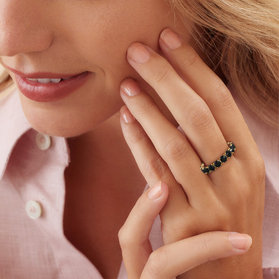 This Vivienne 4.0 stackable ring in 14 Carat gold is set with black diamond. This gold stacked Vivienne 4.0 ring is the perfect addition to your ring collection! As the name suggests, it is a ring which can be combined on one finger with another ring. It gives you the opportunity to create your own style. A stacked ring usually represents a certain memory of someone special or a memorable moment. It is common to combine a stacked ring, representing an anniversary, with a wedding ring. But this eternity ring, combined with your other rings, also makes a classy fashion item. A customized modern stackable ring is the perfect gift! New exquisite designs are added daily by our team of passionate goldsmiths. And each design can be customized. Simply customize the precious metals and the color of gemstones which will be used, for example. This makes your design of the modern Vivienne 4.0 stackable ring truly unique!Because we design and deliver our own rings, we can offer you a ring at a price you won't find anywhere else. A ring is made to order, which helps prevent excess supplies, so we can make you a great price offer. We understand it feels risky, buying your ring online, but we will gladly assist in the designing process, taking your budget into consideration.To make it easier for you, we offer a 30 day return policy. Check our terms and conditions.