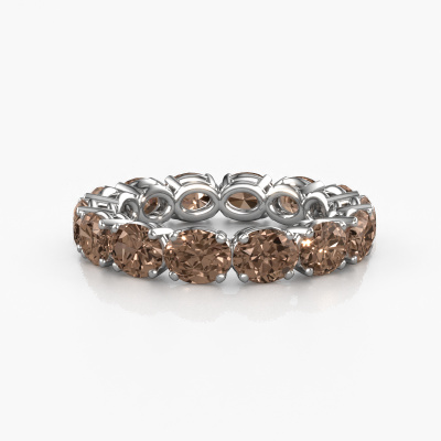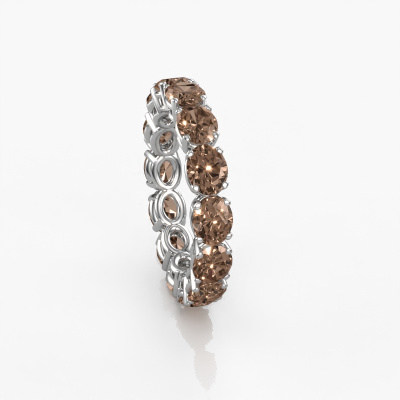This is our Vivienne OVL 5x4 ring. This specific type is called an eternity ring and it is set with a continuous line of identically cut gemstones. The ring is made in 14 Carat white gold and is set with small brown diamonds, 0.35 crt. This white gold Eternity ring is a perfectly beautiful and meaningful way to give your proposal that special touch. The magnificent evenly shaped brown diamonds are pave set around the ring. The identical brown diamonds are carefully selected to give the ring a maximum effect. Do keep in mind we use natural resources so small differences between stones are common. The special effect is enhanced due to precise positioning of the brown diamonds. This requires the utmost precision and a skillful hand but for our skilled artisans this is what excites them. The result is a ring with a row of brown diamonds which seem to have no beginning nor end. The perfect symbol of your love for her! Isn't she a beauty?By using our modern techniques, we can design and customize the finest quality jewels with the utmost care for you. Our rings are always priced 30 percent lower than other jewelers. We make rings to order, so we don't have to maintain a large stock. If you have a certain budget, we are more than happy to advice you accordingly.New jewelry designs are added to our online collection daily. Our team of passionate designers strive to create extraordinary and diverse designs. Have you seen a ring you like? Please feel free to contact us. Based on a good price/ quality ratio, we will make you an offer you can't refuse!To make it easier for you, we offer a 30 day return policy. Check our terms and conditions.