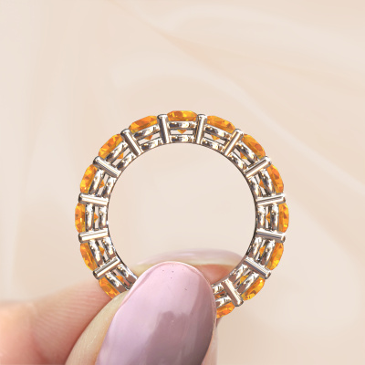 This is our Michelle full 4.2 ring. This specific type is called an eternity ring and it is set with a continuous line of identically cut gemstones. The ring is made in 14 Carat white gold and is set with small citrin, 4.2 mm. This white gold Eternity ring is a perfectly beautiful and meaningful way to give your proposal that special touch. The magnificent evenly shaped citrin are pave set around the ring. The identical citrin are carefully selected to give the ring a maximum effect. Do keep in mind we use natural resources so small differences between stones are common. The special effect is enhanced due to precise positioning of the citrin. This requires the utmost precision and a skillful hand but for our skilled artisans this is what excites them. The result is a stackable ring with a row of citrin which seem to have no beginning nor end. The perfect symbol of your love for her! Isn't she a beauty?After receiving your order, our goldsmiths will start the creative process of making your Michelle full 4.2 ring. We don't keep stock. This is advantageous because these costs will not be passed on to you. Therefore, we can offer jewelry at exceptionally low prices.New jewelry designs are added to our online collection daily. Our team of passionate designers strive to create extraordinary and diverse designs. Have you seen a ring you like? Please feel free to contact us. Based on a good price/ quality ratio, we will make you an offer you can't refuse!To make it easier for you, we offer a 30 day return policy. Check our terms and conditions.