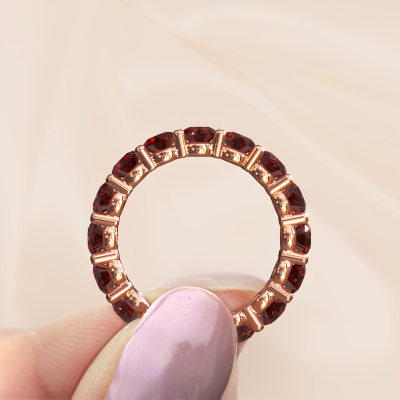 This Heddy rnd 4.0 stackable ring in 14 Carat rose gold is set with garnet. This rose gold stacked Heddy rnd 4.0 ring is the perfect addition to your ring collection! As the name suggests, it is a ring which can be combined on one finger with another ring. It gives you the opportunity to create your own style. A stacked ring usually represents a certain memory of someone special or a memorable moment. It is common to combine a stacked ring, representing an anniversary, with a wedding ring. But this eternity ring, combined with your other rings, also makes a classy fashion item. How do you like this exclusive rose gold stackable ring? Simply customize this Heddy rnd 4.0 stackable ring, using our online tool. Subsequently, your personal eternity Heddy rnd 4.0 stackable ring will be made by hand by our goldsmiths. Precious metals and gemstones can be customized to your liking. Do you have specific preferences which are unavailable in our online tool? Please feel free to contact us. We will customize your personal exclusive stackable ring to your liking.Are you on a budget? Please feel free to contact us, so we can go discuss your options. We offer our rings at guaranteed best price, because we make them to order. You won't find such a price anywhere else!To make it easier for you, we offer a 30 day return policy. Check our terms and conditions.