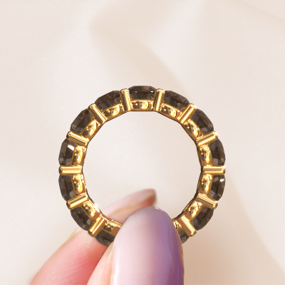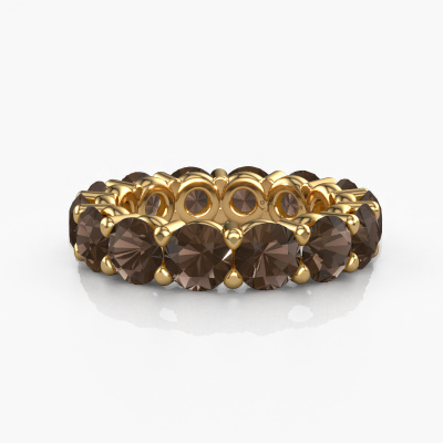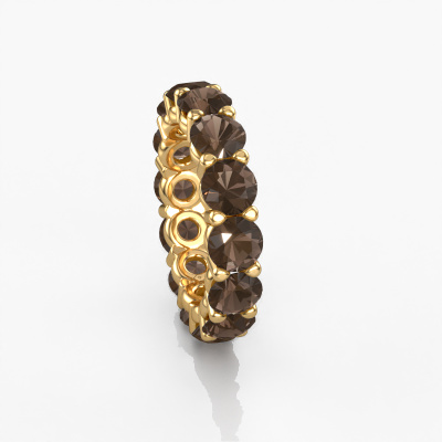 This is our Heddy rnd 5.0 ring. This specific type is called an eternity ring and it is set with a continuous line of identically cut gemstones. The ring is made in 14 Carat gold and is set with small smokey quartz, 5 mm. The amazing smokey quartz are identical in size and are set in the ring band. Our smokey quartz are selected with great care so they are identical, which gives the best result. In order to get the best result, our artisans position all smokey quartz by hand with the utmost care. Our Goldsmiths have one ambition, which is creating the perfect ring. That is why we love what we do. In the end you get a stunning exclusive gold ring with a row of smokey quartz which seem to have no beginning nor end. The perfect symbol of your undying love for her! How special is that!By using a combination of the latest modern techniques, combined with ancient crafting, we can make all our rings in our own studio. Each jewel is made to order. This is advantageous because we can offer you a price you won't find anywhere else.