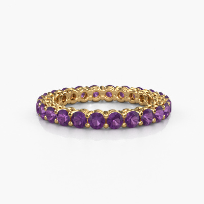 This is our Michelle full 2.7 ring. This specific type is called an eternity ring and it is set with a continuous line of identically cut gemstones. The ring is made in 14 Carat gold and is set with small amethysten, 2.7 mm. The amazing amethysten are identical in size and are set in the ring band. Our amethysten are selected with great care so they are identical, which gives the best result. In order to get the best result, our artisans position all amethysten by hand with the utmost care. Our Goldsmiths have one ambition, which is creating the perfect ring. That is why we love what we do. In the end you get a stunning classic gold stackable ring with a row of amethysten which seem to have no beginning nor end. The perfect symbol of your undying love for her! How special is that!By using a combination of the latest modern techniques, combined with ancient crafting, we can make all our rings in our own studio. Each jewel is made to order. This is advantageous because we can offer you a price you won't find anywhere else.New jewelry designs are added to our online collection daily. Our team of passionate designers strive to create extraordinary and diverse designs. Have you seen a ring you like? Please feel free to contact us. Based on a good price/ quality ratio, we will make you an offer you can't refuse!To make it easier for you, we offer a 30 day return policy. Check our terms and conditions.