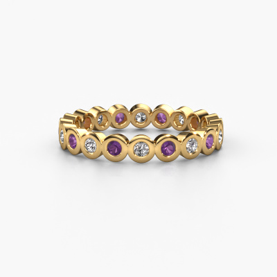 This is our Edwina 1 ring. This specific type is called an eternity ring and it is set with a continuous line of identically cut gemstones. The ring is made in 14 Carat gold and is set with small lab grown diamonds, 0.03 crt. This gold Eternity ring is a perfectly beautiful and meaningful way to give your proposal that special touch. The magnificent evenly shaped lab grown diamonds are pave set around the ring. The identical lab grown diamonds are carefully selected to give the ring a maximum effect. Do keep in mind we use natural resources so small differences between stones are common. The special effect is enhanced due to precise positioning of the lab grown diamonds. This requires the utmost precision and a skillful hand but for our skilled artisans this is what excites them. The result is a stackable ring with a row of lab grown diamonds which seem to have no beginning nor end. The perfect symbol of your love for her! Isn't she a beauty?By using our modern techniques, we can design and customize the finest quality jewels with the utmost care for you. Our rings are always priced 30 percent lower than other jewelers. We make rings to order, so we don't have to maintain a large stock. If you have a certain budget, we are more than happy to advice you accordingly.New jewelry designs are added to our online collection daily. Our team of passionate designers strive to create extraordinary and diverse designs. Have you seen a ring you like? Please feel free to contact us. Based on a good price/ quality ratio, we will make you an offer you can't refuse!To make it easier for you, we offer a 30 day return policy. Check our terms and conditions.