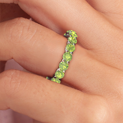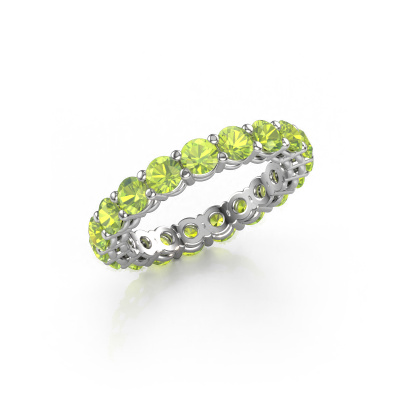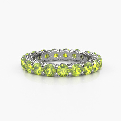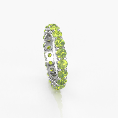 This is our Michelle full 3.4 ring. This specific type is called an eternity ring and it is set with a continuous line of identically cut gemstones. The ring is made in platinum and is set with small peridot, 3.4 mm. This platinum Eternity ring is a perfectly beautiful and meaningful way to give your proposal that special touch. The magnificent evenly shaped peridot are pave set around the ring. The identical peridot are carefully selected to give the ring a maximum effect. Do keep in mind we use natural resources so small differences between stones are common. The special effect is enhanced due to precise positioning of the peridot. This requires the utmost precision and a skillful hand but for our skilled artisans this is what excites them. The result is a stackable ring with a row of peridot which seem to have no beginning nor end. The perfect symbol of your love for her! Isn't she a beauty?By using a combination of the latest modern techniques, combined with ancient crafting, we can make all our rings in our own studio. Each jewel is made to order. This is advantageous because we can offer you a price you won't find anywhere else.New jewelry designs are added to our online collection daily. Our team of passionate designers strive to create extraordinary and diverse designs. Have you seen a ring you like? Please feel free to contact us. Based on a good price/ quality ratio, we will make you an offer you can't refuse!To make it easier for you, we offer a 30 day return policy. Check our terms and conditions.